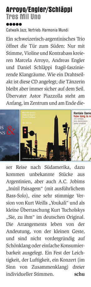«Wie ein Drahtseilakt ist diese CD angelegt; die Tänzerin bleibt aber immer sicher auf dem Seil.» Martin Schuster